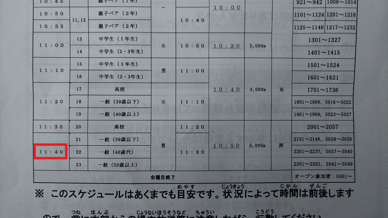 これが応募用紙の記載です。一般男子のスタートは12時ですね。